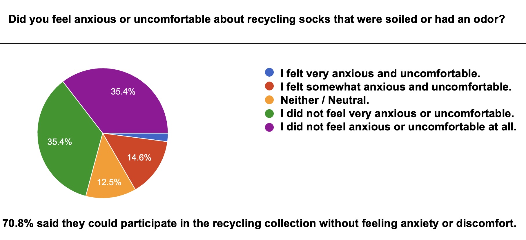 1) 70.8% reported feeling no anxiety or discomfort recycling used socks with dirt or odor