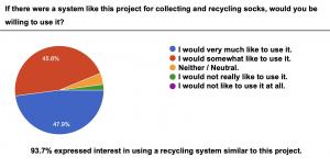 The project addressed assumed psychological barriers to recycling, such as inconvenience, discomfort, privacy concerns, and reluctance to reuse items worn by others. Following sock collection, a survey was conducted among participants.